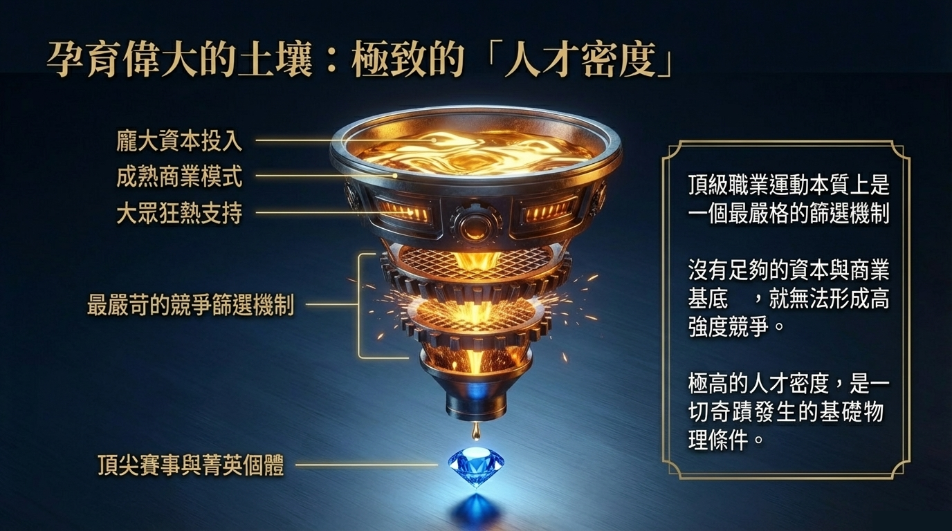 任何偉大團隊的形成,第一個前提都不是文化,而是人才密度。這話聽起來有點冷,但很真實。因為沒有足夠高的人才濃度,再美的文化口號都只會變成會議室牆上的裝飾字。頂級職業運動之所以迷人,不只是因為它精彩,而是因為它提供了全球最殘酷、最透明、最持續的篩選機制。能站上那個舞台的人,本來就已經是極少數。